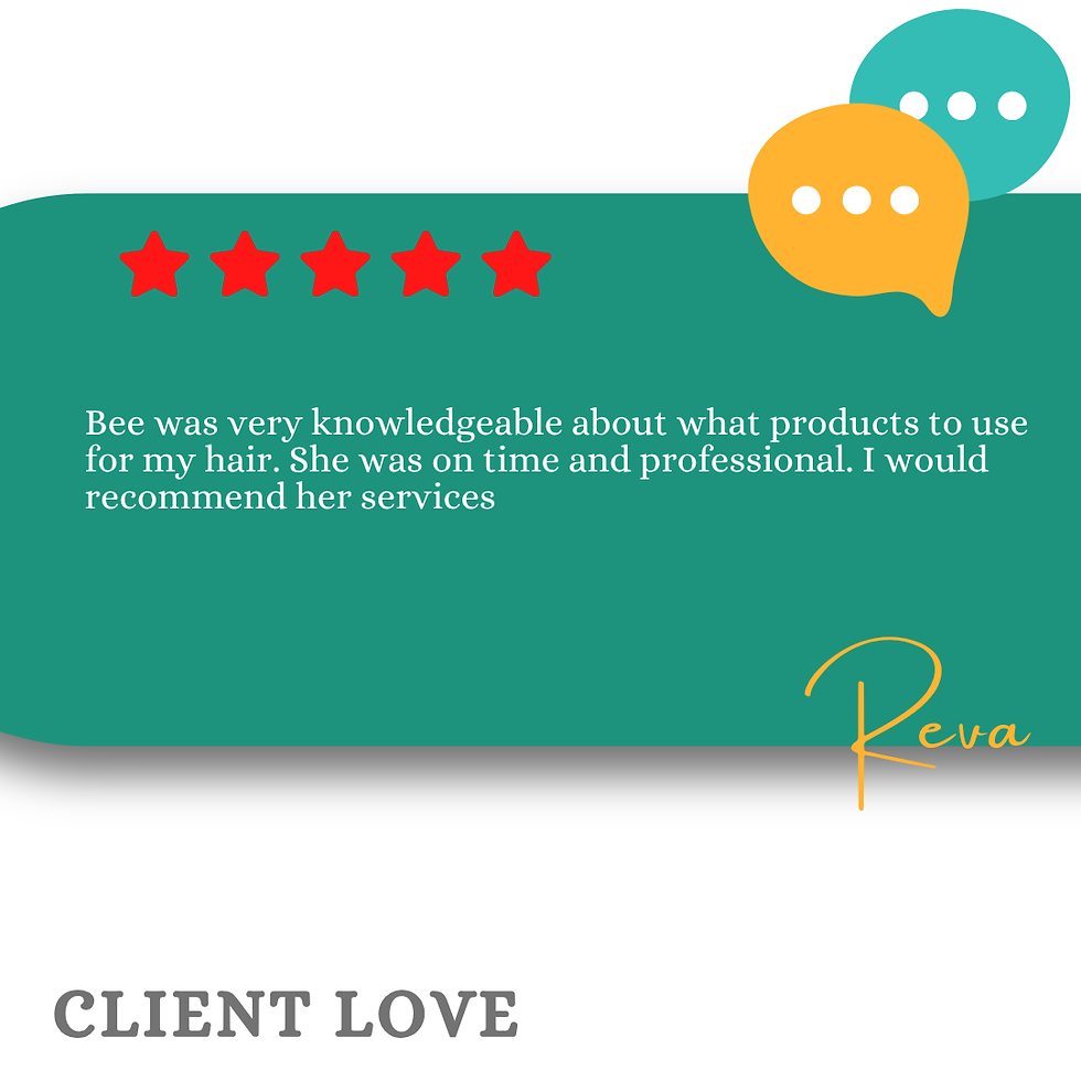 With over a decade of experience and multiple certifications, including non-surgical hair loss replacement, Aveda, Lanza Color, and extensions, Bee specializes in hair health, scalp care for Black women, and the creation of custom medical wigs. She also offers services like color, cuts, relaxers, makeup, and natural hair styling.